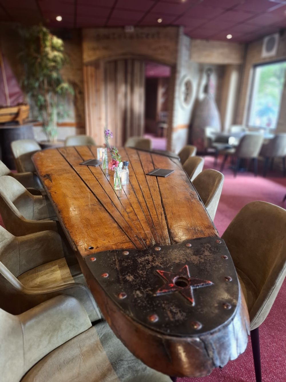 Dieser rustikale Tisch - gebaut aus einem Stück Schiff :-) - in der Hotelbar hat es mir besonders angetan! Wie schön ist der nur!?