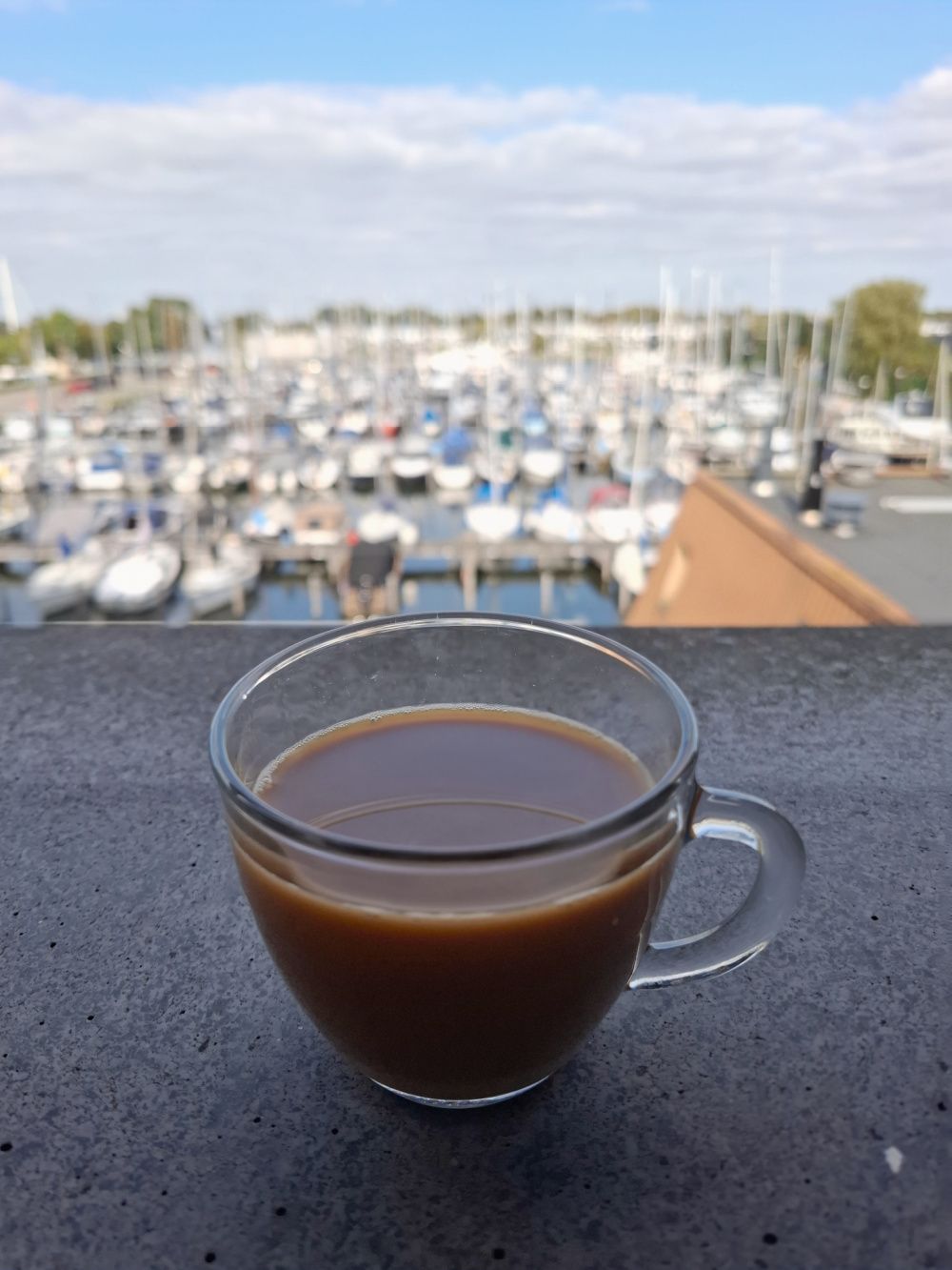 Wir hatten ein sehr schönes, großes Zimmer mit Blick auf den Jachthafen. Auf dem Zimmer gab es auch Kaffee und Tee sowie einen Heißwasserkocher. Nach unserer Ankunft haben wir uns erstmal einen Kaffee gekocht und den Ausblick vom Balkon genossen.